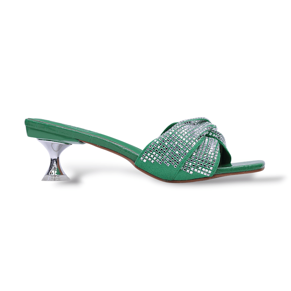 ارتدي الكعب الأخضر المرصع بالأحجار مع فستان أو عباءة أنيقة لإطلالة متكاملة تخطف الأنظار في الاحتفالات والمناسبات الرسمية.